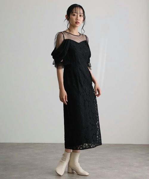 オフショル風総レースドレス