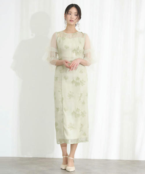 軽やかなチュール素材と花柄モチーフが映える、大人上品なパーティードレス。