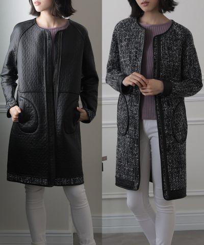 ★ツイード&レザー二つの顔が楽しめるリバーシブルコート
