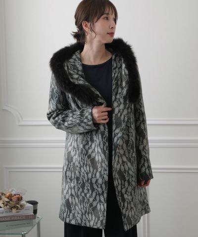 葉模様のレースが贅沢に施された上品コート。