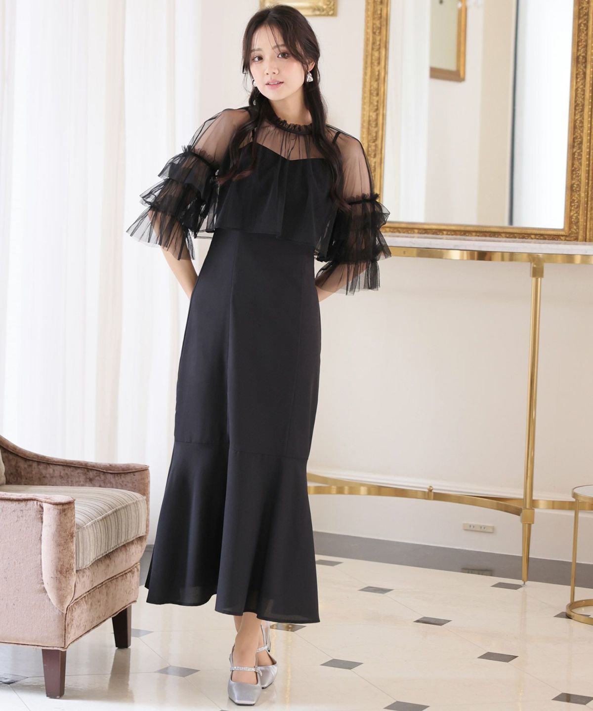 チュールのシースルートップスとキャミワンピのセットドレス。