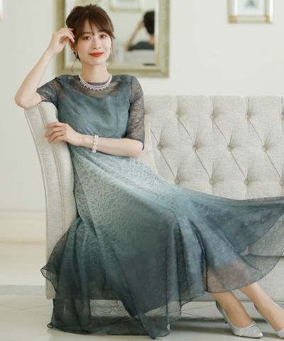 グラデーションレースフレアドレス