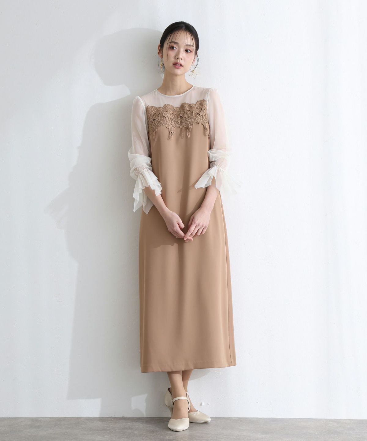 繊細な透け感が軽やかで、華やかなシーンにぴったりの一着。