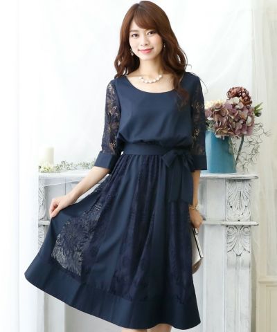 スカートのデザインが特徴的で新鮮♪カジュアル感もある、トレンドの切り替えレースドレス。