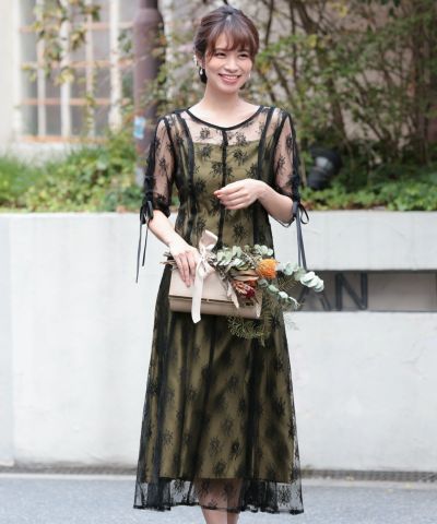 ブーケ風のレースがほどよく透け、大人っぽくドレッシーなデザイン。