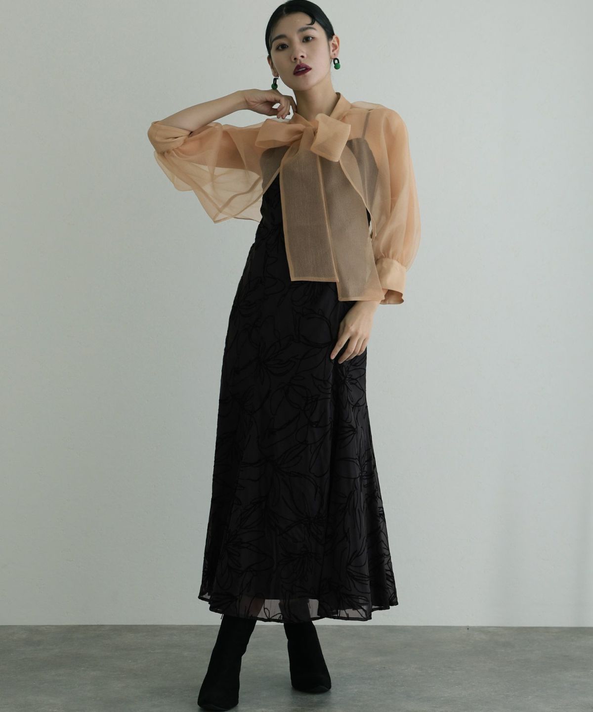 ■シアーな透け感を演出するオーガンジーボレロ