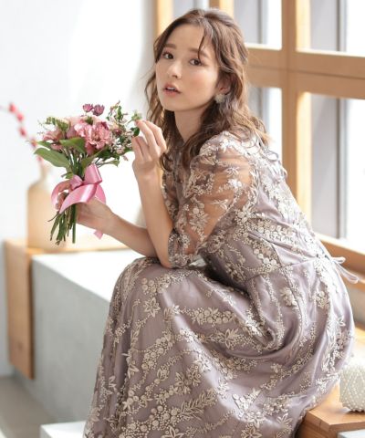 総花柄レースが華やかな印象に