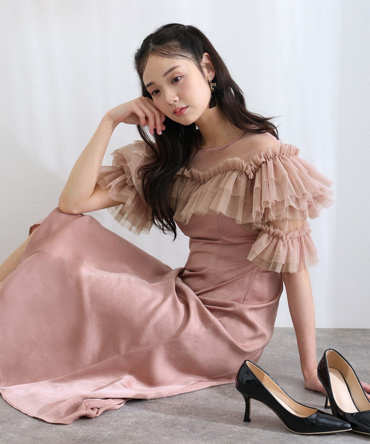 ふんわり重なるフリルと女性らしいシルエットが際立つクラシカルなドレス。