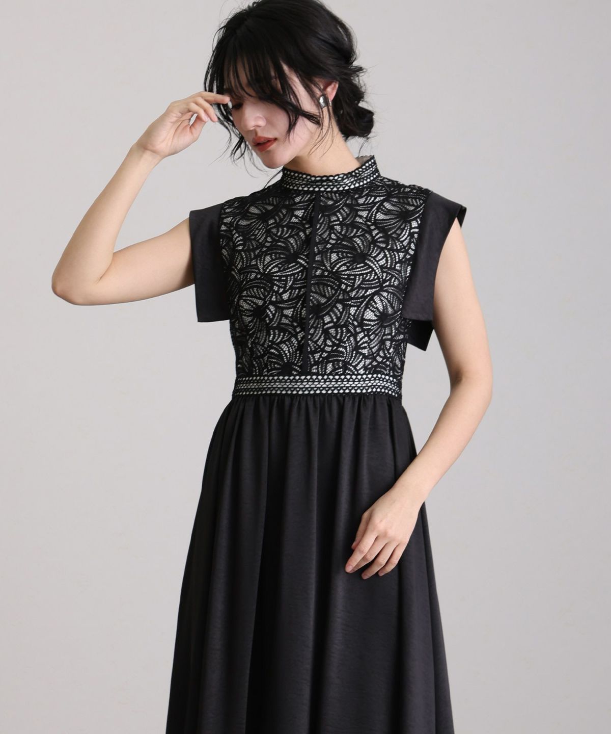 幾何学レースサテンドレス