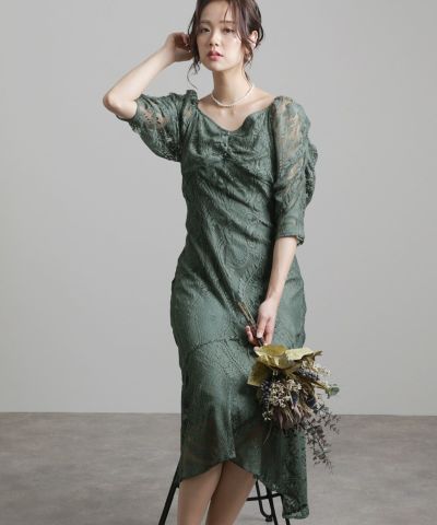 総レースボリュームスリーブドレス