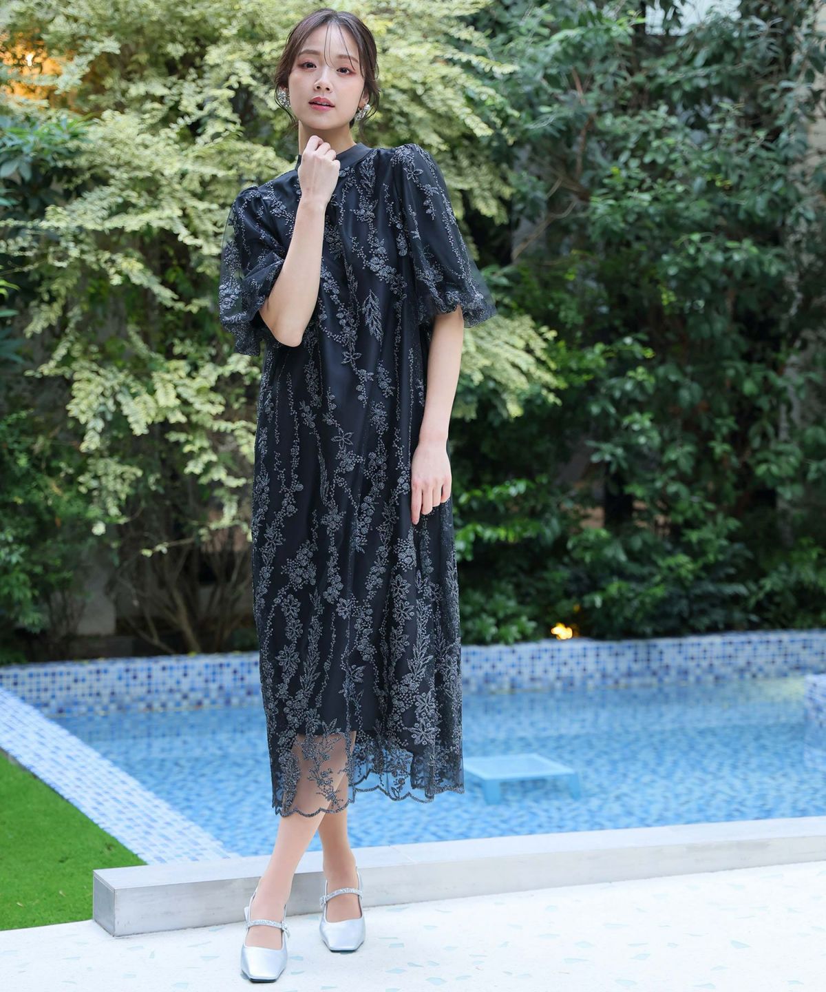 軽やかなチュールに施された美しい刺繍が、特別な日の装いにぴったりの一着。